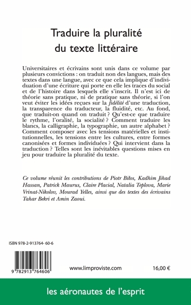 Traduire la pluralité du texte littéraire rassemble la majeure partie des contributions de la journée d’étude « Traduire la pluralité du texte » qui s’est tenue le 23 novembre 2013 à l’INALCO.